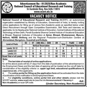 NCERT Recruitment 2025: सरकारी नौकरी की तलाश कर रहे युवाओं के लिए अच्छी खबर है। नेशनल काउंसिल ऑफ एजुकेशनल रिसर्च एंड ट्रेनिंग ने नॉन टीचिंग के विभिन्न पदों पर भर्ती निकाली है। इसके लिए ऑनलाइन आवेदन की प्रक्रिया 17 दिसंबर, 2025 से शुरू हो गई है। योग्य और इच्छुक उम्मीदवार आधिकारिक वेबसाइट ncert.nic.in पर जाकर 8 जनवरी, 2026 तक आवेदन कर सकते हैं। इस भर्ती अभियान के जरिए देशभर के विभिन्न क्षेत्रीय कार्यालयों और संस्थानों में कुल 173 पदों को भरा जाएगा। बता दे कि NCERT शिक्षा मंत्रालय के तहत एक ऑटोनॉमस ऑर्गेनाइजेशन है, जिसका हेडक्वार्टर नई दिल्ली में है। भर्ती डायरेक्ट एक ओपन कॉम्पिटिटिव एग्जाम के माध्यम से की जाएगी। इसमें सफल होने वालों को स्किल टेस्ट और इंटरव्यू के लिए बुलाया जाएगा।