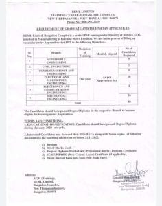 आवेदन प्रक्रिया 4 नवंबर 2022 से शुरू हो चुकी है और इच्छुक उम्मीदवार 21 नवंबर 2022 तक आवेदन कर सकते हैं। आवेदन करने के लिए किसी प्रकार आवेदन शुल्क भुगतान की आवश्यकता नहीं होगी। उम्मीदवार ऑफिशियल वेबसाइट www.bemlindia.in पर जाकर आवेदन कर सकते हैं। भर्ती से जुड़ी अन्य जानकारी के लिए एक बार ऑफिशियल नोटिफिकेशन जरूर देखें। ऑफिशियल नोटिफिकेशन यहाँ देखें