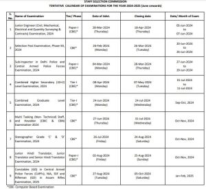 एसएससी एग्जाम कैलेंडर का शेड्यूल