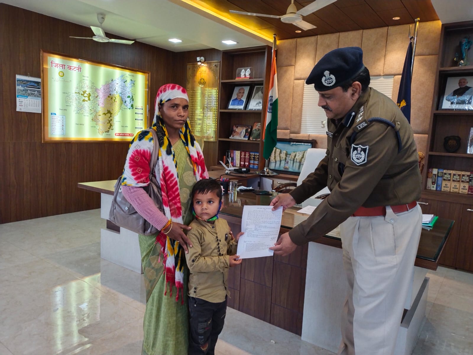 कटनी, अभिषेक दुबे।  2017 में पुलिस में नौकरी के दौरान पिता की हार्ट-अटैक से मौत हो जाने पर 5 साल के बच्चे को अनुकम्पा नियुक्ति मिली है। विशिष्ट पुलिस अधीक्षक सुनील कुमार जैन ने अनुकम्पा नियुक्ति पत्र देकर पुलिस लाइन में पदस्थापना की है। यह मप्र पुलिस का सबसे नन्हा बाल आरक्षक बन गया है। इस बाल आरक्षक की माँ सविता मरकाम ने बताया कि उनके पति प्रधान आरक्षक चालक श्याम सिंह मरकाम निवासी कुहिया छपारा तहसील लखनादौन जिला सिवनी की 23 फरवरी 2017 को हार्ट-अटैक से मौत हो गई थी। पति की मौत के बाद पत्नी सविता मरकाम ने अपने 5 वर्षीय बेटे गजेंद्र मरकाम को पुलिस की नौकरी दिलाने की ठानी। नरसिंहपुर में पद खाली न होने पर कटनी में पदस्थाना के निर्देश प्राप्त हुए। जिस पर मंगलवार को पुलिस अधीक्षक सुनील कुमार जैन ने आवश्यक कार्रवाई कराते हुए मां की उपस्थिति में पांच वर्ष के बालक को बाल आरक्षक के पद पर अनुकम्पा नियुक्ति का पत्र सौंपा।