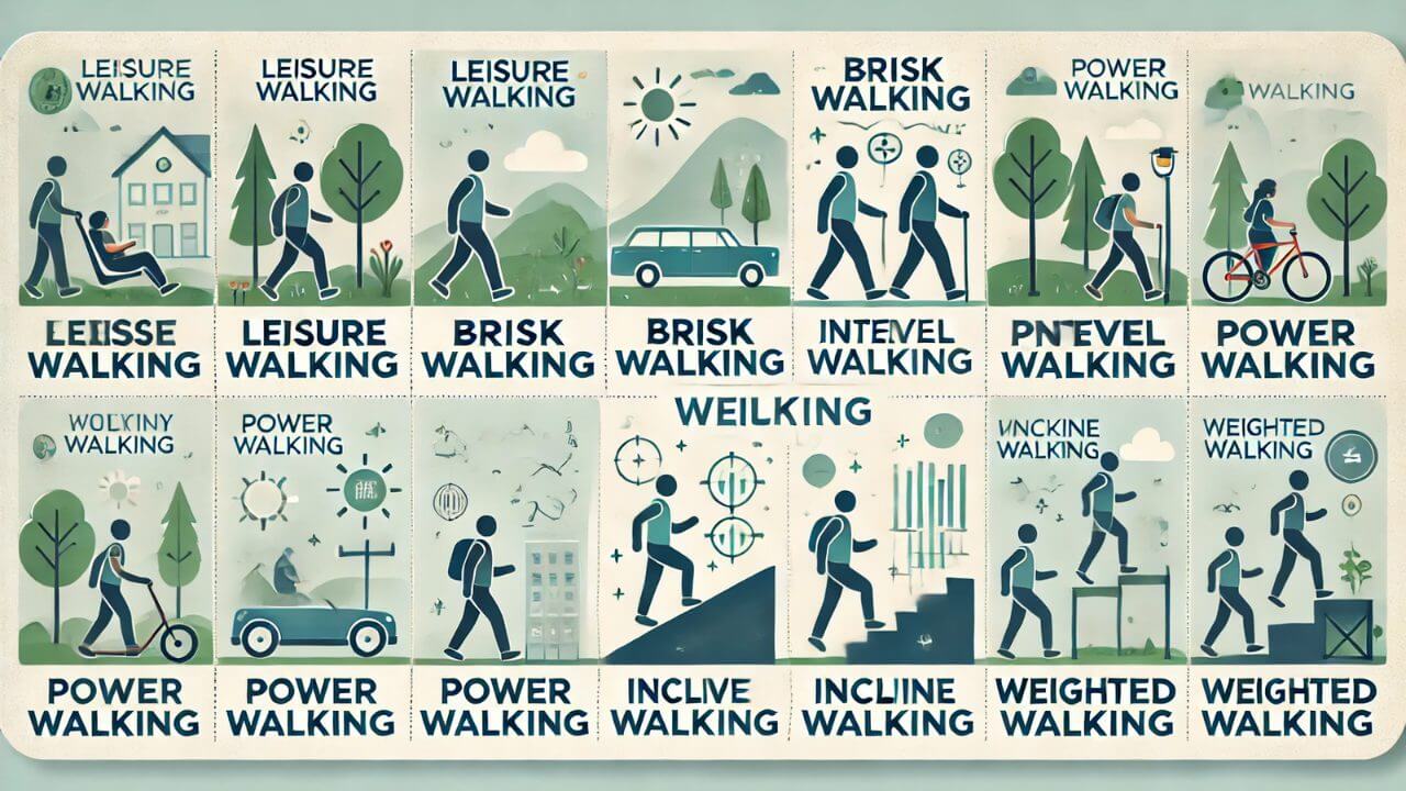 वॉक एक कम प्रभाव वाली एरोबिक एक्सरसाइज़ है जो कैलोरी बर्न करने में मदद करता है। जब आप नियमित रूप से वॉक करते हैं तो आपका शरीर जमा किए फैट को एनर्जी के रूप में उपयोग करता है..जिससे वजन कम होता है। वॉक के दौरान बर्न होने वाली कैलोरी की मात्रा आपकी गति, अवधि, वजन और इलाके (सपाट या ढलान) पर निर्भर करती है। उदाहरण के लिए..एक औसत व्यक्ति (70 किलो) 30 मिनट की तेज वॉक (5-6 किमी/घंटा) में लगभग 150-200 कैलोरी बर्न कर सकता है। वॉक कई प्रकार की हो सकती है..और सबका अपना उद्देश्य और लाभ होता है। आज हम अलग-अलग तरह की वॉक के बारे में जानेंगे।
