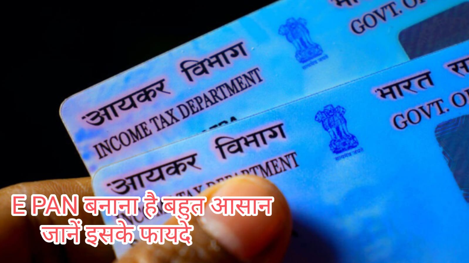 जिन यूजर के पास पहले से वैध आधार नंबर है उनके लिए इसे बनाना बहुत आसान है, ई-पैन पीडीएफ के फॉर्मेंट में मिलता है। ई-पैन एक डिजिटली साइन पैन कार्ड है जो आधार के ई-केवाईसी डेटा के आधार पर इलेक्ट्रॉनिक फॉर्मेट में जारी किया जाता है।
