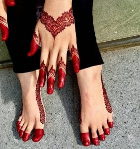 इतना ही नहीं आप हाथों में ट्रेडिशनल डिज़ाइन वाला आलता लगाए। उस पर ही आप मेहंदी की नकाशी भी कर सकते हैं। ऐसे में आपके हाथ में मेहंदी भी लग जाएगी और मेहंदी के बिना इस्तेमाल से हाथ भी सुन्दर लगेंगे।