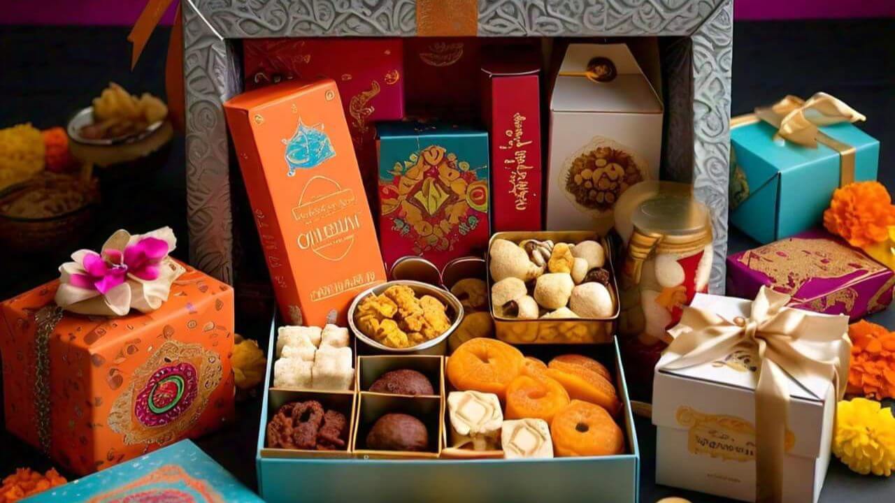 6. आर्टिसनल मिठाई और स्नैक्स बास्केट : पारंपरिक मिठाइयों के अलावा आप आर्टिसनल मिठाइयाँ जैसे फ्लेवर्ड बर्फी, ड्राई फ्रूट्स के साथ एक्सपेरिमेंटल स्नैक्स और मिलेट्स से बनी हेल्दी मिठाइयाँ भी दे सकते हैं। इनका एक सुंदर सा हैंगर आपके इस स्वादिष्ट गिफ्ट को और बेहतरीन बना देगा।