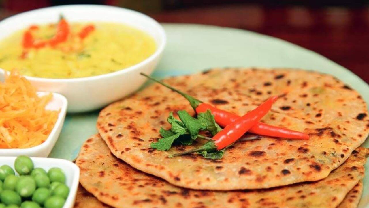 6. तैयार चिली गार्लिक पराठा को हरी चटनी या दही के साथ गरमा-गरम परोसें।