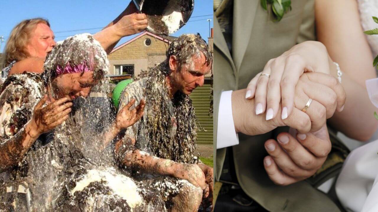 सुनने में आपको यह रस्म बड़ी ही अजीबोगरीब लग रही होगी? लेकिन स्कॉटलैंड में यह एक पुरानी और अनोखी परंपरा है, जिसे ब्लैकनिंग ऑफ द ब्राइड एंड ग्रूम कहा जाता है। इस रिवाज़ के अनुसार शादी से पहले दूल्हा दुल्हन को तरह तरह की गंदी और चिपचिपी चीज़ों से सरोबार कर दिया जाता है और फिर उन्हें पूरे इलाक़े में घुमाया जाता है। यह सिर्फ़ एक मज़ाकिया रस्म नहीं है, बल्कि इसे शादीशुदा ज़िंदगी की चुनौतियों के लिए मानसिक रूप से तैयार करने का एक तरीक़ा माना जाता है।