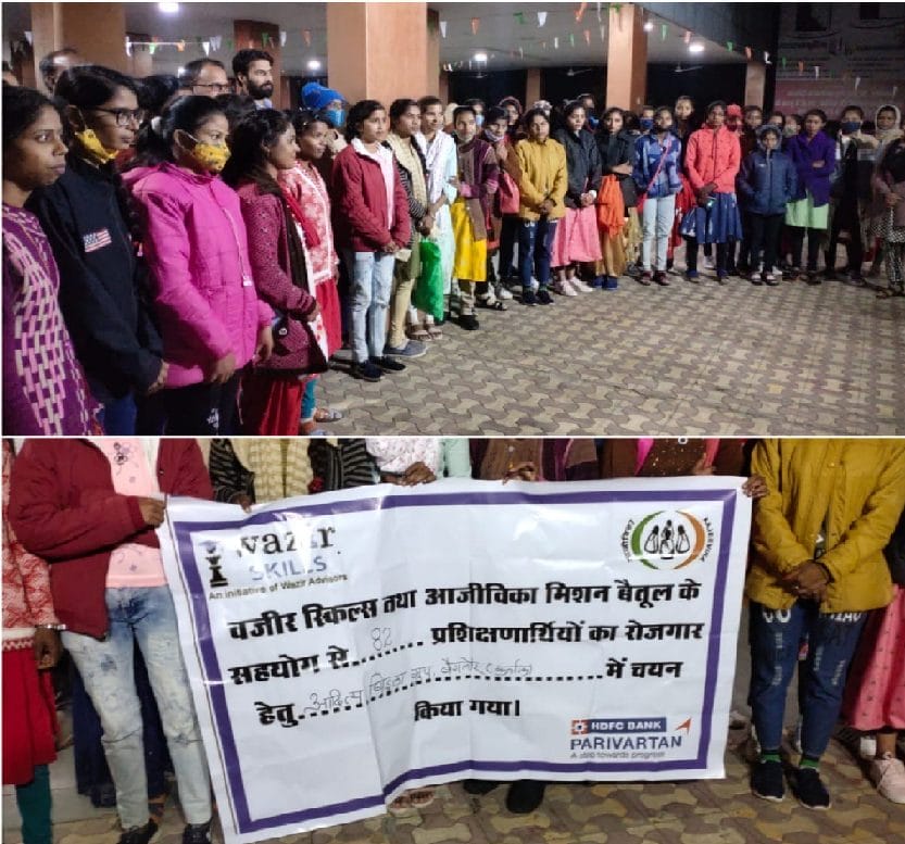 दरअसल बैतूल जिला पंचायत के माध्यम से महिलाओं को स्वरोजगार से जोड़ने के लिए आजीविका मिशन चलाया जा रहा है। इसके तहत जिले में ऐसी महिलाएं या युवतियां जो स्वरोजगार से जुड़ना चाहती है उन्हें ट्रेनिंग देकर जॉब दिलाए जाता है। इसके अलावा उनको स्व सहायता समूह के माध्यम से रोजगार भी दिलाया जाता है। योजना के तहत आजीविका मिशन के साथ वजीर स्किल एवम एचडीएफसी परिवर्तन फायनेंशियल ने रोजगार मेले का आयोजन किया था और उसमें चयनित महिलाओं और युवतियों को डेढ़ माह तक सिलाई मशीन ऑपरेटिंग की ट्रेनिंग दी गई। इसके बाद इनका बेंगलुरु में स्थित आदित्य बिरला ग्रुप की फैक्ट्री में सिलाई मशीन ऑपरेटिंग का जॉब मिला है। इस जॉब के लिए 82 महिलाओं और युवतियों का चयन हुआ है ।