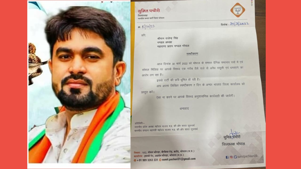 Bhopal News: बीजेपी मंडल अध्यक्ष पर मारपीट ओर अडीबाज़ी का मामला दर्ज होने के बाद  पार्टी ने थमाया नोटिस