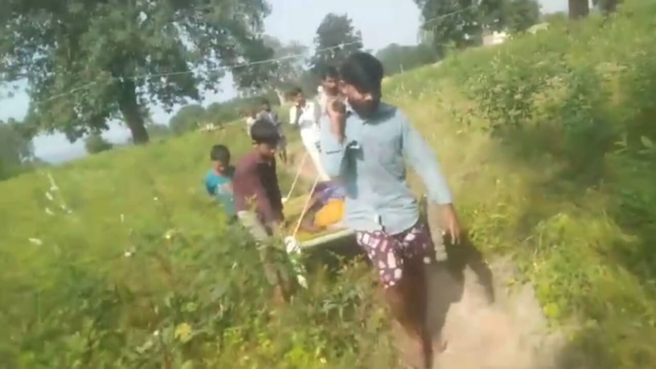 खाट पर लादकर बुजुर्ग महिला को अस्पताल ले गए परिजन