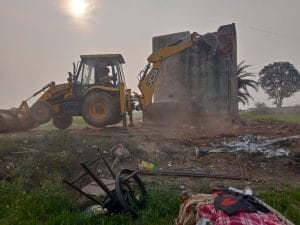 ग्वालियर, अतुल सक्सेना। प्रदेश में चल रहे एंटी माफिया अभियान (anti mafia campaign) के तहत ग्वालियर जिला प्रशासन (Gwalior District Administration) ने गुरुवार को दो अलग अलग जगह कार्यवाही करते हुए 110 करोड़ रुपये की शासकीय भूमि अतिक्रमण से मुक्त कराई। शासकीय जमीनों पर भू माफिया (land mafia) ने पक्के निर्माण कर लिए थे, खेती कर रहे थे, प्लॉटिंग की जा रही थी, दुकाने बना दी गई थी। प्रशासन की टीम ने अवैध अतिक्रमण करने वाले भू माफिया के खिलाफ पुलिस में आपराधिक प्रकरण दर्ज करवाए हैं।