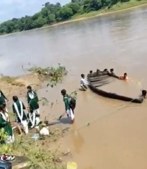 अनूपपुर, डेस्क रिपोर्ट। अनूपपुर में एक बड़ा हादसा सामने आया है यहाँ गुरुवार को स्कूली बच्चों से भरी नाव पलट गई। हादसा बकेली गांव के पास हुआ। राहत की बात यह रही कि सभी बच्चों को सुरक्षित बचा लिया गया। बताया जा रहा है कि हादसा उस वक़्त हुआ जब नाविक रोज की तरह सुबह 10 बजे स्कूली बच्चों को छोड़ने जा रहा था। नाव में कक्षा नवमी से 12वीं तक के तक के करीबन 20 छात्र-छात्राएं बैठे हुई थे। बकेली गांव से छात्रों को बैठाकर सोन नदी के दूसरे छोर पर नाव पहुंची, तभी नाव में सवार स्कूली बच्चे उतरने की कोशिश करने लगे। जल्दबाजी के चक्कर में सभी बच्चे एक साथ नाव में खड़े हो गए और उतरने की कोशिश करने लगे, कि तभी इसी हड़बड़ाहट में नाव अनियंत्रित होकर पानी में समा गई और देखते ही देखते सभी 20 बच्चे पानी में गिर गए। बच्चों के पानी में गिरते ही हल्ला मच गया। फौरन नाविक ने लड़कियों और लड़कों को पानी से बाहर निकाला।
