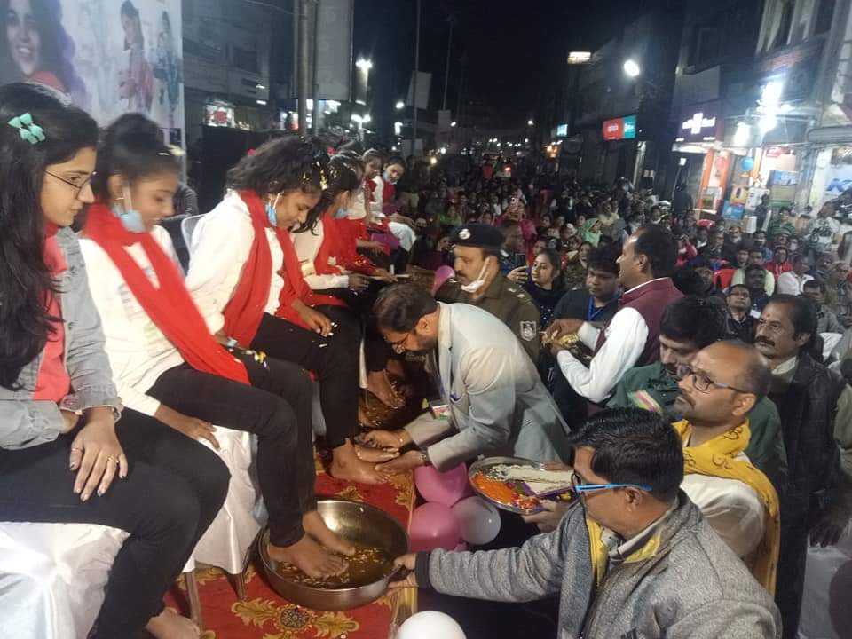 कार्यक्रम की शुरुआत में पछार क्लब के अध्यक्ष हितेंद्र बुधौलिया ने इस आयोजन के महत्व को बताते हुए कहा कि उनके ग्रूप के प्रयास है कि समाज में बच्चियों के सम्मान के लिये आमजन पहल करें इस कारण यह आयोजन किया गया है।विधायक जजपाल सिंह जज्जी (MLA Jajpal Singh Jajji), कलेक्टर अभय वर्मा (Collector Abhay Varma) एवं पुलिस अधीक्षक रघुवंश सिंह भदौरिया (SP Raghuvansh Singh Bhadauria) द्वारा लगभग एक सैकड़ा से अधिक कन्याओं के पैर धोकर, फूल बरसा कर एवं तिलक लगा कर पूजन अर्चन किया गया। इस दौरान विभिन्न सामाजिक क्षेत्रों में कार्य करने वाली बेटियों ने अपने ग्रुप के कार्यो को लोगों के सामने रखा।