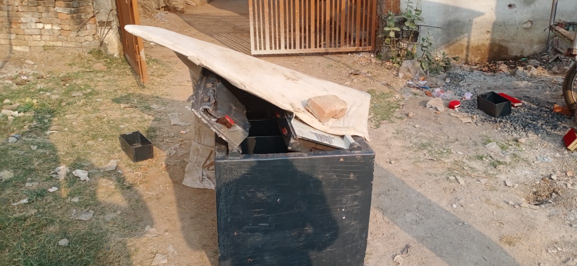 Ashoknagar Theft in Jewelers Shop : शनिवार-रविवार की दरमियान रात अशोकनगर जिले के बहादुरपुर कस्बे में चोरी की बड़ी वारदात हो गई। अज्ञात चोरों ने नेशनल हाईवे 346 ए के बस स्टॉप के पास एक सर्राफा दुकान की बेखौफ होकर शटर तोड़ी, अंदर रखी 8 क्विंटल वजनी तिजोरी उठाई और दुकान से 30 मीटर दूर पीछे बने बाड़े में ले गए। जहां इत्मीनान से तिजोरी के पलड़े तोड़ कर अंदर रखे नगदी, सोने व चांदी के जेवरातों को चोरी कर ले गए। घटना का पता सुबह दुकानों के मालिक को चला तो उन्होंने दुकानदार को सूचना दी। इसके बाद पुलिस पहुंची और सुराग एकत्रित करना शुरू किए हैं। मौके पर सुबह ही एसडीओपी देवनारायण यादव पहुंच गए थे। जिसके बाद फिंगरप्रिंट एक्सपर्ट एवं खोजी कुत्ते को बुला