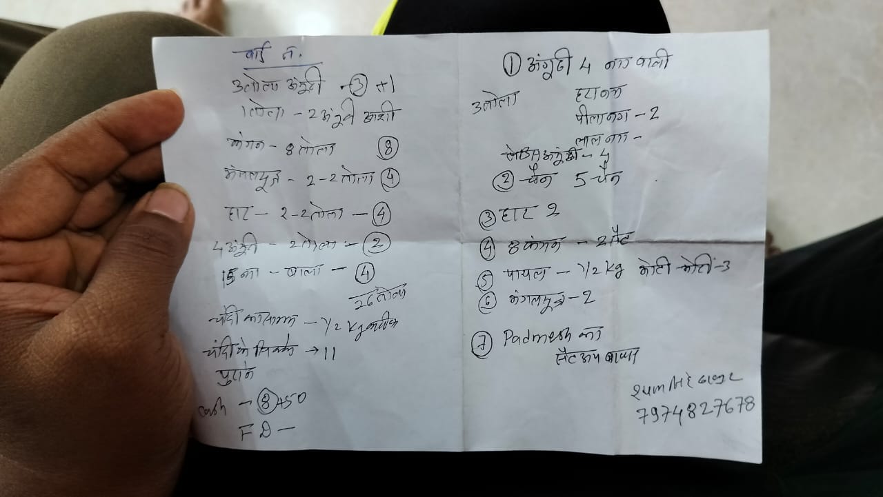 चिंता की बात तो यह है कि रिहायशी इलाके में चोरी की घटना ने पुलिस गश्त पर सवाल खड़े कर दिए है। अज्ञात चोरों ने शर्मा दंपत्ति के घर से 3 तोले की चार अंगूठी, 8 तोले के कंगन, दो मंगलसूत्र, बेटी और पत्नी की अंगूठी, सोने और चांदी के सिक्के, 5 चैन, 2 हार, नगद 55 से 60 हजार रुपए चोरी कर इस घटना को अंजाम दिया है।