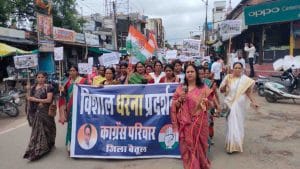Betul News : मध्य प्रदेश के बैतूल में आगामी चुनाव को दृष्टिगत रखते हुए कांग्रेस चुनावी मोड में आ चुकी है। शनिवार भाजपा की जनविरोधी नीतियों के खिलाफ कांग्रेस की एकजुटता तब देखने को मिली जब प्रदेश नेतृत्व के आह्वान पर जिले के चारों कांग्रेस विधायकों समेत सम्पूर्ण जिले के कांग्रेसी संगठनों से जुड़े पुरुष और महिला पदाधिकारी एवं कार्यकर्ता गांधी चौक पर आयोजित धरना प्रदर्शन में शामिल हुए। धरने में काफी बड़ी संख्या में महिलाएं भी उपस्थित हुई थी। धरने में शामिल जनप्रतिनिधियों ने महाकाल लोक में किये गए भ्रष्टाचार सहित सतपुड़ा भवन में हाल ही में हुई कथित आगजनी, बढ़ती महंगाई और मुख्यमंत्री शिवराज सिंह की विफल नीतियों पर भाजपा को जम कर आड़े हाथों लिया। प्रदर्शन के बाद समस्त कांग्रेसी हाथों में सरकार विरोधी तख्ती लिए नारेबाजी करते हुए कलेक्ट्रेट कार्यालय पहुंचे जहां कांग्रेसजनों ने राज्यपाल के नाम कलेक्टर को ज्ञापन सौंपा।