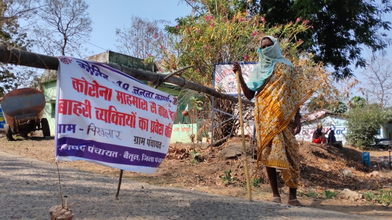 बैतूल, वाजिद खान। कोरोना के खिलाफ जंग में अब महिलाएं सामने आ गई हैं। बैतूल के एक गांव में ग्रामीणों ने पूरे गांव को लॉक कर दिया है। खास बात यह है कि इसका फैसला गांव की महिलाओं ने लिया और जनता कर्फ्यू लगा दिया। इतना ही नहीं, अब वो दिनभर खुद लाठियां लेकर गांव की सीमा पर निगरानी कर रही हैं ताकि कोई बाहरी व्यक्ति गांव में प्रवेश न कर पाए।