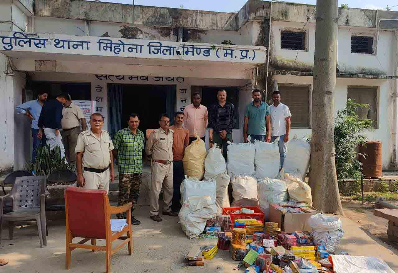 भिंड, सचिन शर्मा। भिंड (Bhind) जिले की मिहोना पुलिस ने बड़ी कार्रवाई की है जहाँ पुलिस ने अवैध पटाखा भंडारण करने वाले एक व्यापारी के घर में छापामार कार्रवाई की गई। जानकारी मिल रही है कि व्यापारी ने अवैध विस्फोटक सामग्री अपने रूम के अंदर छिपा रखी जो पुलिस ने जब्त कर ली। और पुलिस ने आरोपी व्यापारी के खिलाफ अवैध विस्फोटक सामग्री जमा करने के आरोप में प्रकरण पंजीबद्ध कर लिए गया है।