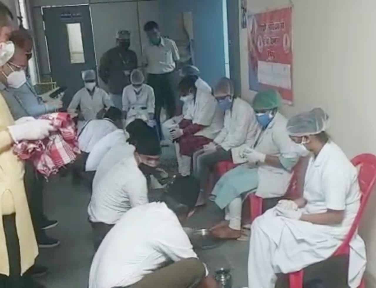 राष्ट्रीय स्वयंसेवक संघ के आधा दर्जन से अधिक स्वयं स्वयं सेवकों ने सांय काल जिला चिकित्सालय पहुंच कर कोविड आईसीयू में सेवाएं दे रही नर्सेज को एक कतार में बिठाकर सर्वप्रथम उनके पैर पखारे फिर उनके पैरों को तोलिया से साफ किया , माथे पर रोली-चंदन लगाकर वंदन अभिनंदन किया और फिर भारत मां तथा स्वामी विवेकानंद के चित्र भी सम्मान स्वरूप भेंट किये। संघ स्वयंसेवकों में जिला प्रचारक नितिन अग्रवाल, ब्रजमोहन शर्मा, संतोष शर्मा, रामानंद शर्मा, रामकुमार भदौरिया, मनीष ओझा, हरिकृष्ण शर्मा इत्यादि प्रमुख रूप से मौजूद रहे। इन सभी स्वयं सेवकों ने दिन रात संक्रमण काल मे मेहनत कर रहीं नर्सेज और अधिकारियों को उनके अच्छे और समर्पण भावी कार्यों के लिए नमन किया।