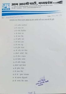 भोपाल, डेस्क रिपोर्ट। मध्यप्रदेश नगर निकाय चुनाव व त्रि स्तरीय पंचायत चुनाव के लिए आप पार्टी (AAP Party) ने “स्टार प्रचारकों ” की सूची जारी की है इस सूची में दिल्ली के मुख्यमंत्री अरविंद केजरीवाल का नाम शामिल हैं।