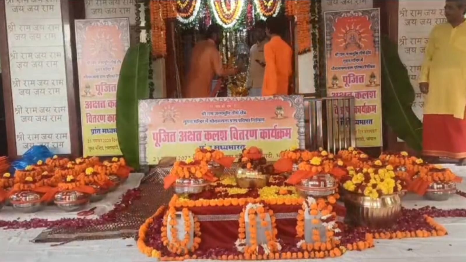 बताया गया है कि विश्व हिंदू परिषद के कार्यकर्ता इन कलश में अयोध्या से आये पीले चावलों को मध्य प्रान्त के 32 जिलों के 35 लाख घरों में बांटेंगे , इसके लिए उन्होंने तहसील तहसील, गाँव गाँव जाना शुरू कर दिया है, वे 22 जनवरी को सभी राम भक्त को अयोध्या पहुंचने का निमंत्रण दे रहे हैं।