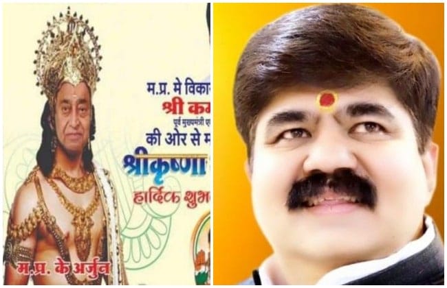 मध्य प्रदेश (Madhya Pradesh) के इंदौर में पूर्व सीएम कमलनाथ (Kamalnath) का एक पोस्टर खूब वायरल हो रहा है| जन्माष्टमी से पहले वायरल हो रहे इस पोस्टर में कमलनाथ को ‘अर्जुन’ बताया है| इसको लेकर भाजपा ने कांग्रेस पर निशाना साधा है| भाजपा नेता दुर्गेश केसवानी (Durgesh Keswani) ने ट्वीट कर लिखा ‘हे कृष्ण अब तो शंख बजाओ न..होती है सदैव सत्य की जीत, नकली अर्जुन को बताओ न’|
