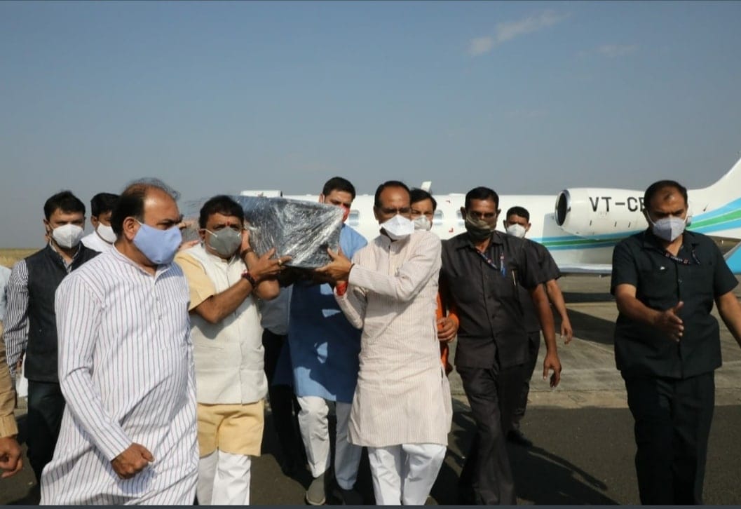 भोपाल , डेस्क रिपोर्ट । मध्यप्रदेश (Madhya pradesh के वरिष्ठ भाजपा नेता, पूर्व राज्यसभा सांसद एवं विधायक विश्वास सारंग के पिता कैलाश सारंग (Kailash sarang) का पार्थिव शरीर को मुंबई से आज रविवार को विशेष विमान से भोपाल (Bhopal) लाया गया । स्टेट हेंगर पर मुख्यमंत्री शिवराज सिंह चौहान (CM Shivraj singh Chauhan) ने उनकी पार्थिव देह को कंधा दिया। वरिष्ठ नेता कैलाश सारंग का शनिवार को मुंबई (Mumbai) के एक अस्पताल में निधन हो गया था, आज शाम राजधानी के सुभाष नगर विश्राम घाट पर राजकीय सम्मान के साथ अंतिम संस्कार किया जायेगा। प्रधानमंत्री नरेंद्र मोदी (PM Narendra Modi)समेत मध्यप्रदेश के कई वरिष्ठ नेताओं ने उनके निधन पर शोक जताया है।