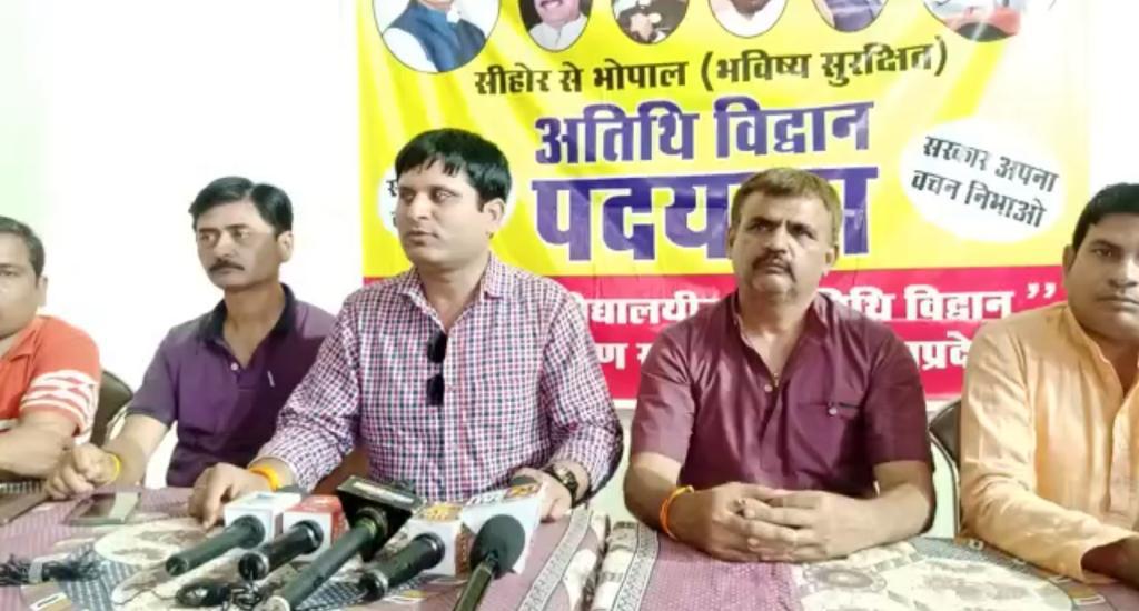 पिछले दो दशकों से ज्यादा समय से रिक्त पदों के विरुद्ध सेवा देने वाले महाविद्यालयीन अतिथि विद्वान लंबे समय से नियमितीकरण की मांग कर रहे हैं। इसे लेकर अब इन्होने सीहोर से लेकर भोपाल तक पदयात्रा निकाली है। पदयात्रा से पहले अतिथि विद्वान महासंघ/मोर्चा के पदाधिकारियों ने सीहोर में एक प्रेस कॉन्फ्रेंस की। यहां महासंघ के संयोजक डॉ देवराज सिंह ने कहा कि पिछले दो दशकों से ज्यादा समय से अतिथि विद्वान अनिश्चित भविष्य और आर्थिक बदहाली के बावजूद लगातार सेवा दे रहे हैं, लेकिन सरकार आज तक अतिथि विद्वानों का भविष्य सुरक्षित नहीं कर पाई है जो बेहद निराशाजनक है। उन्होने कहा कि क्या सरकार की मंशा सिर्फ अतिथि विद्वानों को चुनावी मोहरा बनाकर रखने की है। वो सरकार की इस शोषणकारी के खिलाफ पदयात्रा कर रहे हैं और मांगें पूरी नहीं होने पर आगे भी उनका आंदोलन जारी रहेगा।