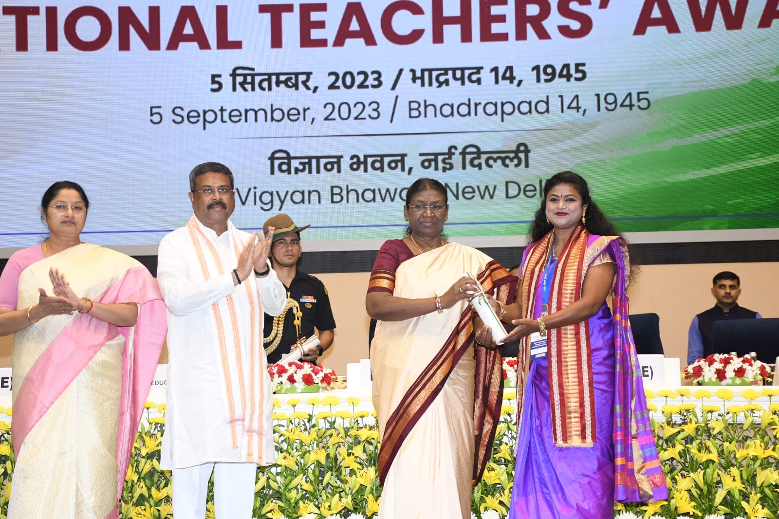 Happy Teacher Day 2023 : आज 5 सितंबर को शिक्षक दिवस के मौके पर मध्यप्रदेश के नर्मदापुरम जिले के हायरसेकंडरी स्कूल सांडिया में माध्यमिक शिक्षक के रूप में पदस्थ सारिका घारू को महामहिम राष्ट्रपति द्रौपदी मुर्मू ने दिल्ली में राष्ट्रीय शिक्षक सम्मान से सम्मानित किया।इस अवसर पर सारिका ने कहा कि मुझे अत्यंत प्रसन्नता है कि उन महिला राष्ट्रपति जी के कर कमलों से मुझे यह सम्मान मिला है जो स्वयं ग्रामीण आदिवासी क्षेत्र में शिक्षक रह चुकी हैं ।