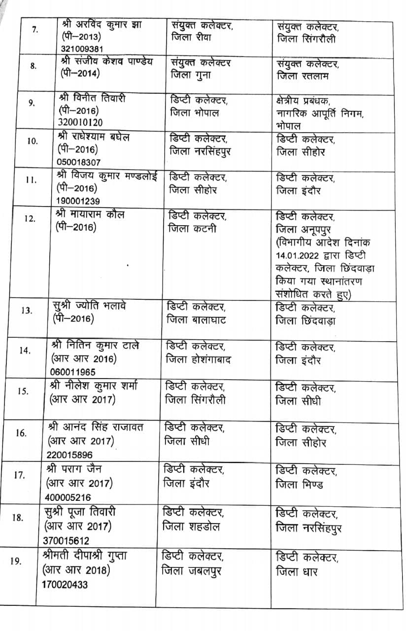 भोपाल, डेस्क रिपोर्ट। मध्यप्रदेश सरकार ने 21 राज्य प्रशासनिक प्रशासनिक सेवा के अधिकारियों के ट्रांसफर आदेश जारी किए है। शासन के सामान्य प्रशासन विभाग ने लिस्ट जारी की है, देखिए जारी सूची..