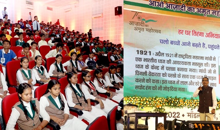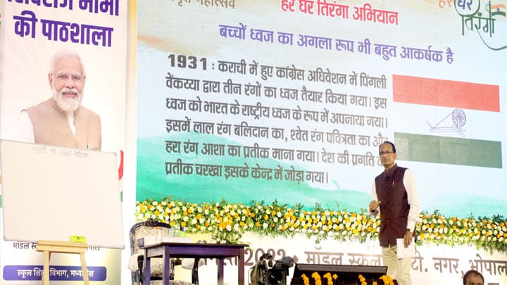 “शिवराज मामा की पाठशाला” में बच्चों को सम्बोधित करते हुए मुख्यमंत्री शिवराज सिंह चौहान ने कहा कि “विजयी विश्व तिरंगा प्यारा, झंडा ऊँचा रहे हमारा, इसकी शान न जाने पाए, चाहे जान भले ही जाए” यह केवल गीत नहीं आजादी की लड़ाई का मंत्र था। भारत सांस्कृतिक रूप से सदा से ही एक रहा है। हमारे देश का गौरवशाली इतिहास रहा है। भारत की समृद्धि की चर्चा पूरी दुनिया में होती थी। इसी के परिणामस्वरूप पुर्तगाली, डच, अंग्रेज आदि कई विदेशी शक्तियाँ भारत आईं और हमें आपसी फूट के कारण गुलाम होना पड़ा। अंग्रेजों के विरुद्ध भारत में वर्ष 1761 में सन्यासी विद्रोह और फकीर विद्रोह से संघर्ष आरंभ हुआ। पहला स्वतंत्रता संग्राम 1857 में अमर शहीद मंगल पांडे ने आरंभ किया। स्वतंत्रता के लिए चले लंबे संघर्ष में अनेकों शहीदों के बलिदान के परिणामस्वरूप हमारा देश स्वतंत्र हुआ। स्वतंत्रता की इस लड़ाई में हमारे ध्वज का बहुत महत्व रहा।