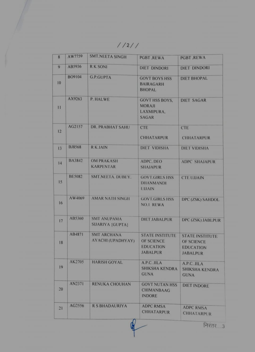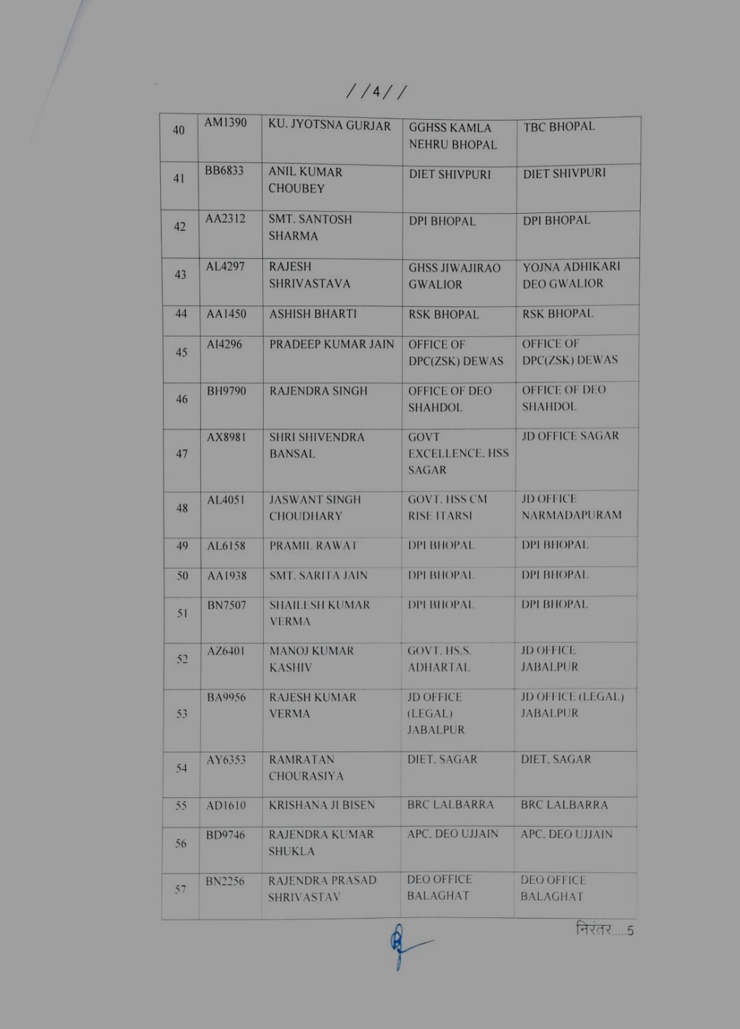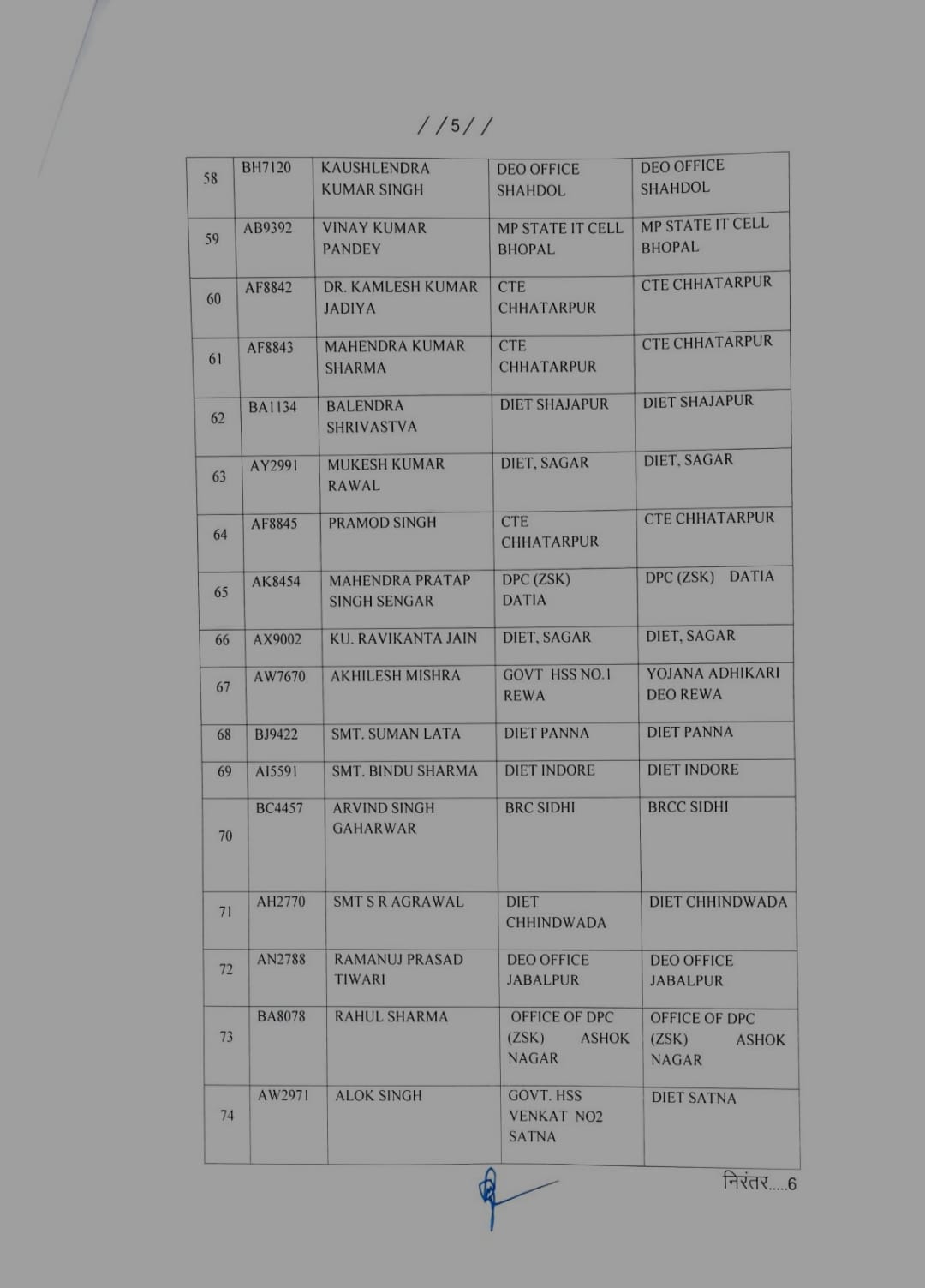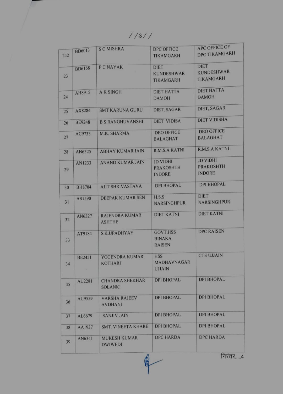 आदेश में कहा गया है कि जिन्हें उच्च पद का प्रभार दिया वे शिक्षा अधिकारी उस पद की शक्तियों का उपयोग कर सकेंगे। जिन्हें प्रभार सौंपा गया है उन्हें आदेश जारी होने की तारीख को तत्काल प्रभाव से कार्यमुक्त किया जाता है, वे 7 कार्यदिवस के अन्दर नवीन पदस्थापना वाले स्थान पर ज्वाइन करें, इसकी सूचना विभागीय प्रमुख को दें, इनका अगले महीने का वेतन नवीन पदस्थापना वाली संस्था से ही निकाला जा सकेगा।