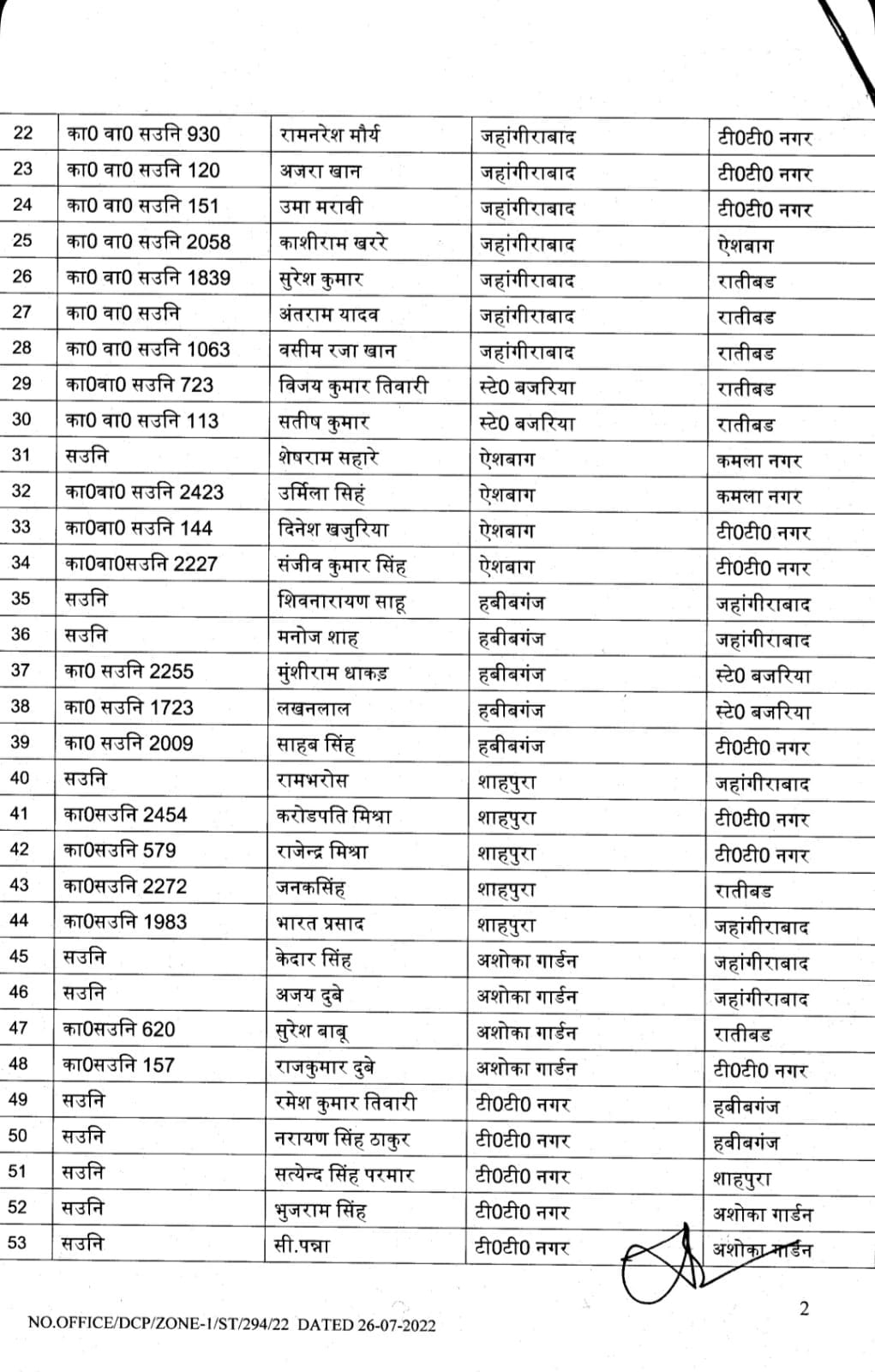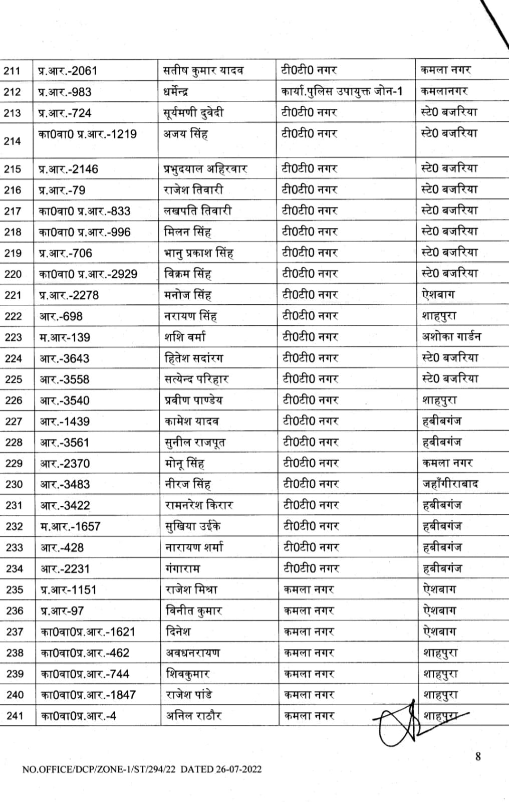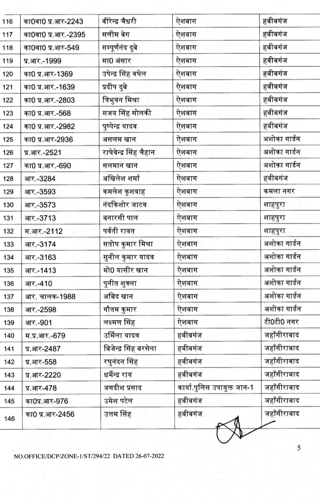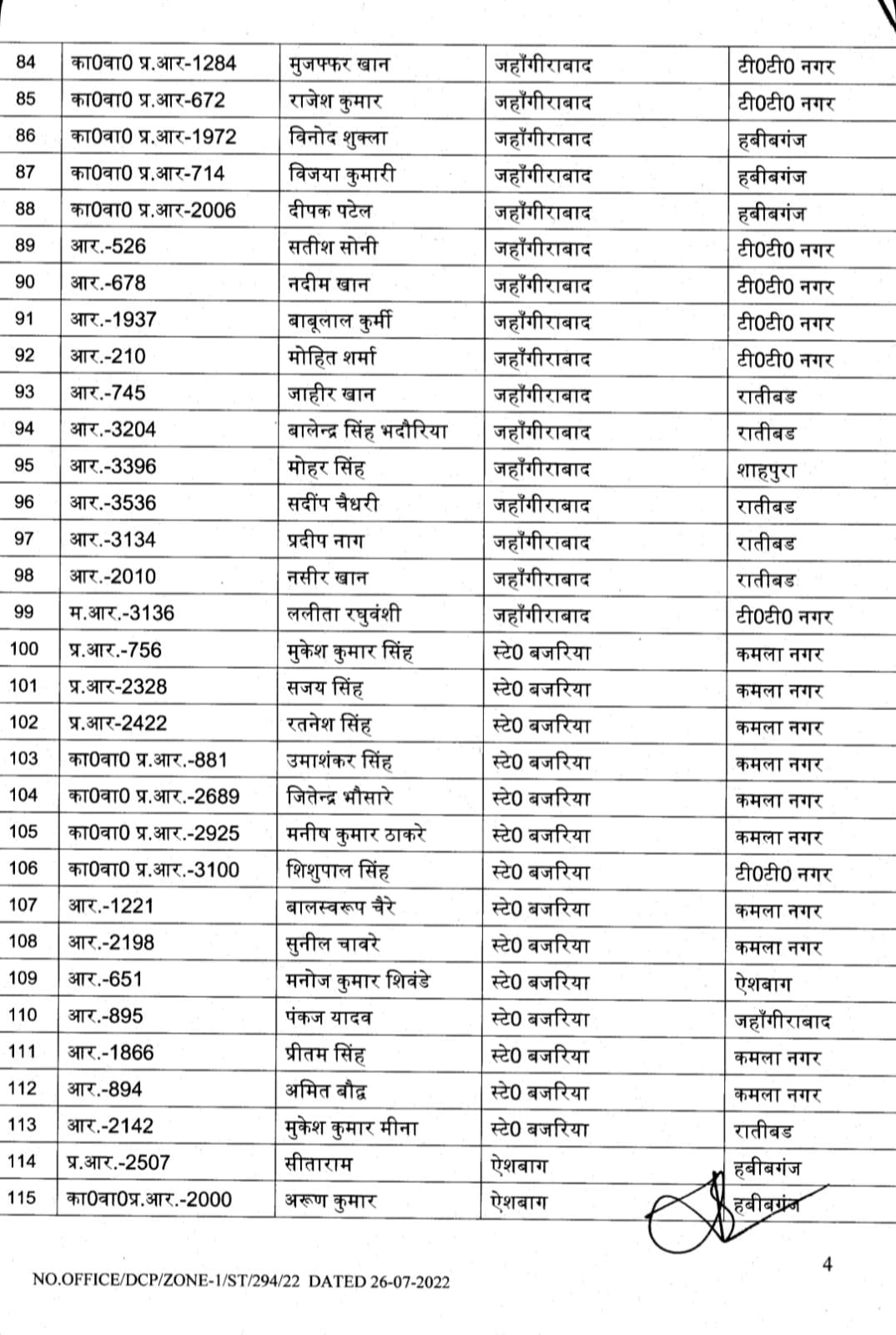 भोपाल , डेस्क रिपोर्ट। मप्र में तबादलों (MP Transfer) का क्रम अभी जारी है। आज भोपाल जोन -1 के पुलिस उपायुक्त ने शासकीय कार्य की सुविधा की दृष्टि से अधिकारियों – कर्मचारियों के थोकबंद तबादले (MP Police Transfer) किये हैं। पुलिस उपायुक्त साईं कृष्णा के हस्ताक्षर से इस तबादला सूची में 262 पुलिस अधिकारियों- कर्मचारियों के नाम शामिल हैं।