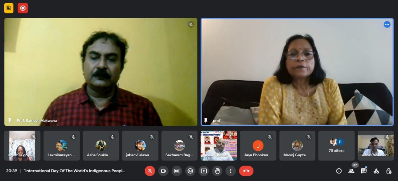 International day of world indigenous people : आशा पारस फॉर पीस एंड हारमनी फाउंडेशन एवं वेद फाउंडेशन द्वारा “इंटरनेशनल डे ऑफ वर्ल्ड इंडिजीनियस पीपल” पर राष्ट्रीय संगोष्ठी का आयोजन किया गया। इस दौरान ‘आदिवासी विकास” विषय पर वक्ताओं ने अपने विचार रखे। प्रो. रमेश मकवाना ने कहा कि सरकारी योजनाओं का लाभ लेने के बाद अपने देश की ही सेवा ही प्राथमिकता होनी चाहिए वहीं डॉ. लक्ष्मीनारायण पयोधि ने कहाकि आदिवासी विकास के लिए शिक्षा में उनकी भाषा और संस्कृति को जोड़कर कार्य किए जाने चाहिए। प्रो. आशा शुक्ला ने अपनी बात रखते हुए कहा कि हम सब भारतवासी भीतर से मूलतः आदिवासी ही हैं।