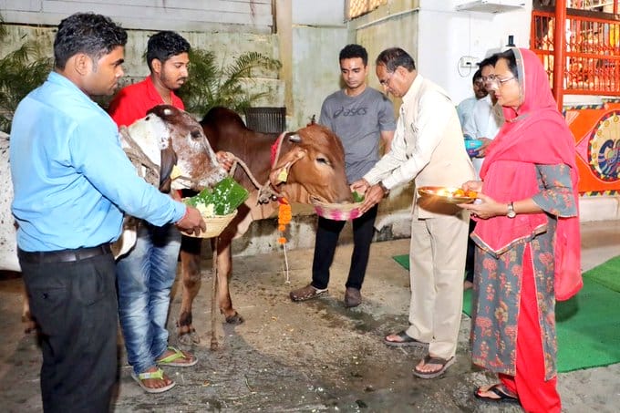 सीएम शिवराज सिंह चौहान (CM Shivraj Singh Chouhan) ने आज अपने निवास पर पत्नी साधना सिंह (Sadhna Singh) और बेटे के साथ गौवंश की पूजा की और सभी को पोला पिठोरा की शुभकामनाएं दी है। उन्होने कहा कि ‘समस्त किसान भाइयों-बहनों को लोक पर्व पोला पिठोरा की हार्दिक बधाई! ईश्वर से यही प्रार्थना करता हूं कि यह पर्व आपके जीवन में खुशहाली एवं आनंद लाये और हर घर-आंगन धन-धान्य एवं सुख, समृद्धि से भर जाये।’ शिवराज सिंह चौहान ने अपने निवास पर पत्नी साधना सिंह के साथ गौवंश की पूजा भी की और कहा कि ‘आज अपने निवास पर सपरिवार गौवंश की पूजा कर पोला पर्व मनाया। बछिया अष्टमी और धनवंतरी की विधि-विधान से पूजा कर गुड़ की की रोटी और चावल का व्यंजन खिलाया। इस पर्व पर किसान बहनों-भाइयों और समस्त प्रदेवासियों की सुख-समृद्धि की कामना करता हूं।’