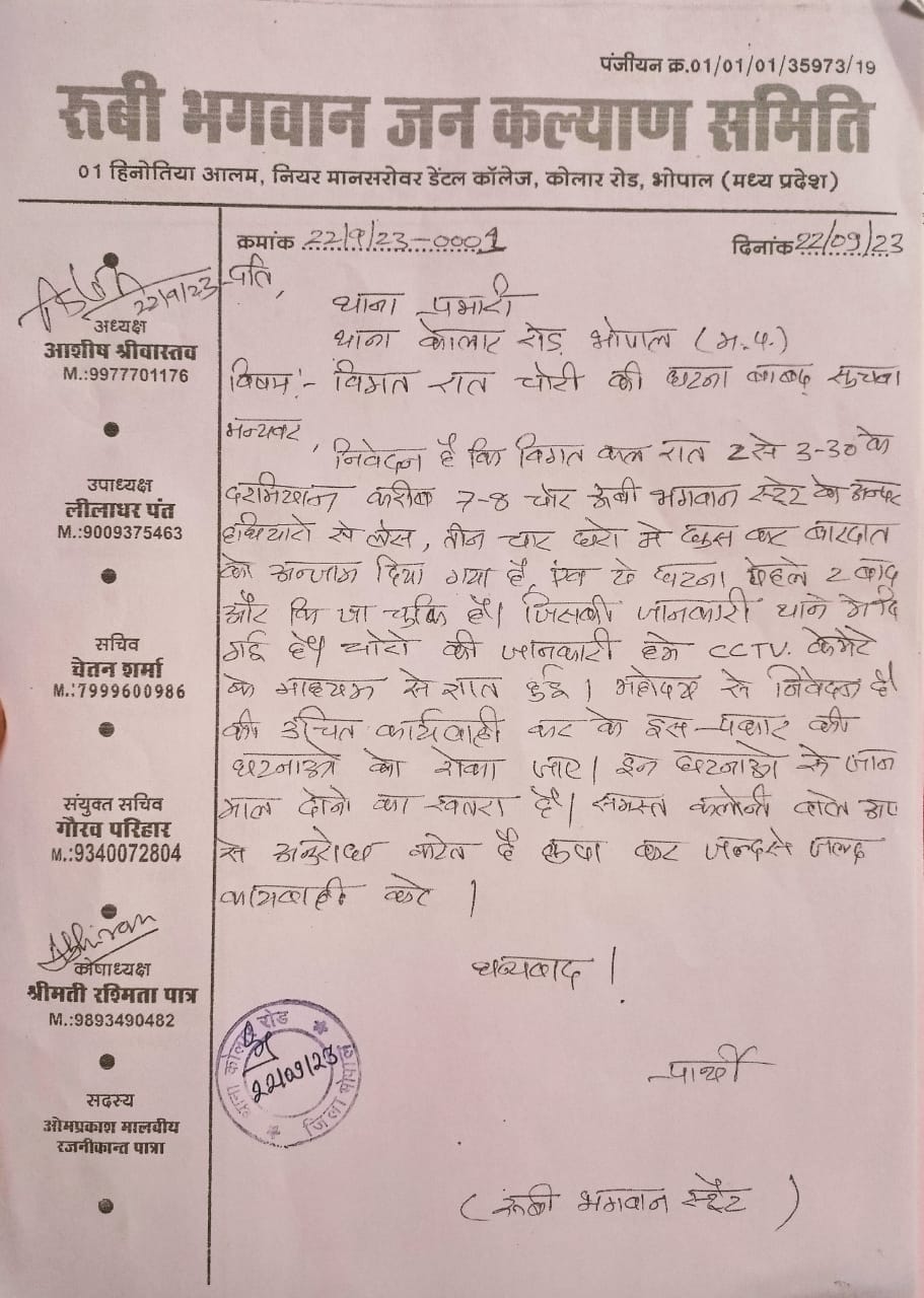 बता दें कि गैंग के सदस्य ने इस काम को बिना चप्पल और जूते के अंजाम दिया है ताकि कदमों की आवाज ना आए। जिनके पास हथियार भी था। फिलहाल, कोलार पुलिस थाने में रहवासियों ने मामले को लेकर ज्ञापन सौंपा है। वहीं, पुलिस ने शिकायत दर्ज करते हुए सीसीटीवी फुटेज के आधार पर गिरोह के सदस्यों की तलाश शुरू कर दी है।