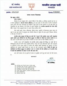 पत्र डॉ राघवेंद्र ने आगे लिखा कि पांच राज्यों में संपन्न विधानसभा चुनाव और मध्यप्रदेश सहित कुछ अन्य राज्यों में संपन्न उप चुनाव और निकाय चुनावों के परिणाम 2 मई को आ जायेंगे। चूँकि भाजपा के प्रदेश अध्यक्ष विष्णुदत्त शर्मा ने मध्यप्रदेश चुनाव आयोग (MP Election Commission) द्वारा परिणामों के बाद विजय जुलूस पर प्रतिबन्ध के फैसले का स्वागत किया है। इसलिए सभी इकाइयों जिले से मंडल स्तर तक को ये निर्देश दिए जाते हैं कि चुनाव परिणामों के बाद चुनाव आयोग के निर्देशों और कोरोना प्रोटोकॉल का अक्षरशः पालन हो। कार्यकर्ता ना विजय जुलूस निकालेंगे और ना ही एक जगह इकठ्ठा होंगे।