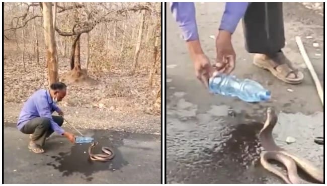 VIDEO: गर्मी से परेशान घूमने निकले नागराज, मिनरल वाटर पीकर बुझाई प्यास