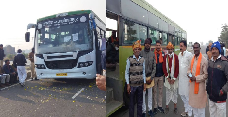 सभी आदिवासी मेहमान चाय-नाश्ता करने के बाद बसों में बैठकर भोपाल के लिए रवाना हुए, इस दौरान इंदौर के होटलीयर्स एसोसिएशन ने बायपास पर सभी बसों में बैठे लोगों का पुष्प बरसाकर स्वागत किया और भोजन के पैकेट और पानी की बोतलें भी दी गई।
