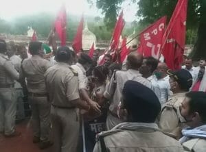 माकपा राज्य सचिव जसविंदर सिंह और जिला सचिव अखिलेश यादव के नेतृत्व में बड़ी संख्या में माकपा कार्यकर्ता बारिश के बीच रैली निकालकर संभाग आयुक्त कार्यालय पहुंचे लेकिन वे सत्याग्रह करने बैठते उससे पहले ही पुलिस ने उन्हें रोक दिया और पुलिस ने उन्हें गिरफ्तार कर लिया।