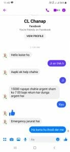 फर्जी फेसबुक आईडी बनाने वाले ने एसडीएम सीएल चनाप के ड्राइवर पिंकू चढोकार को भी मैसेज भेजकर बीस हजार रुपये मांगे थे जब टिंकू को लगा की सर ने दूसरी आईडी क्यों बनाई तो उसने तत्काल एसडीएम को इस बात की सूचना दी और बताया कि उनके नाम से कोई पैसे मांग रहा है। इस मामले में ड्राइवर टिंकू के अलावा लगभग 15 लोगों को मैसेज भेजे गए।