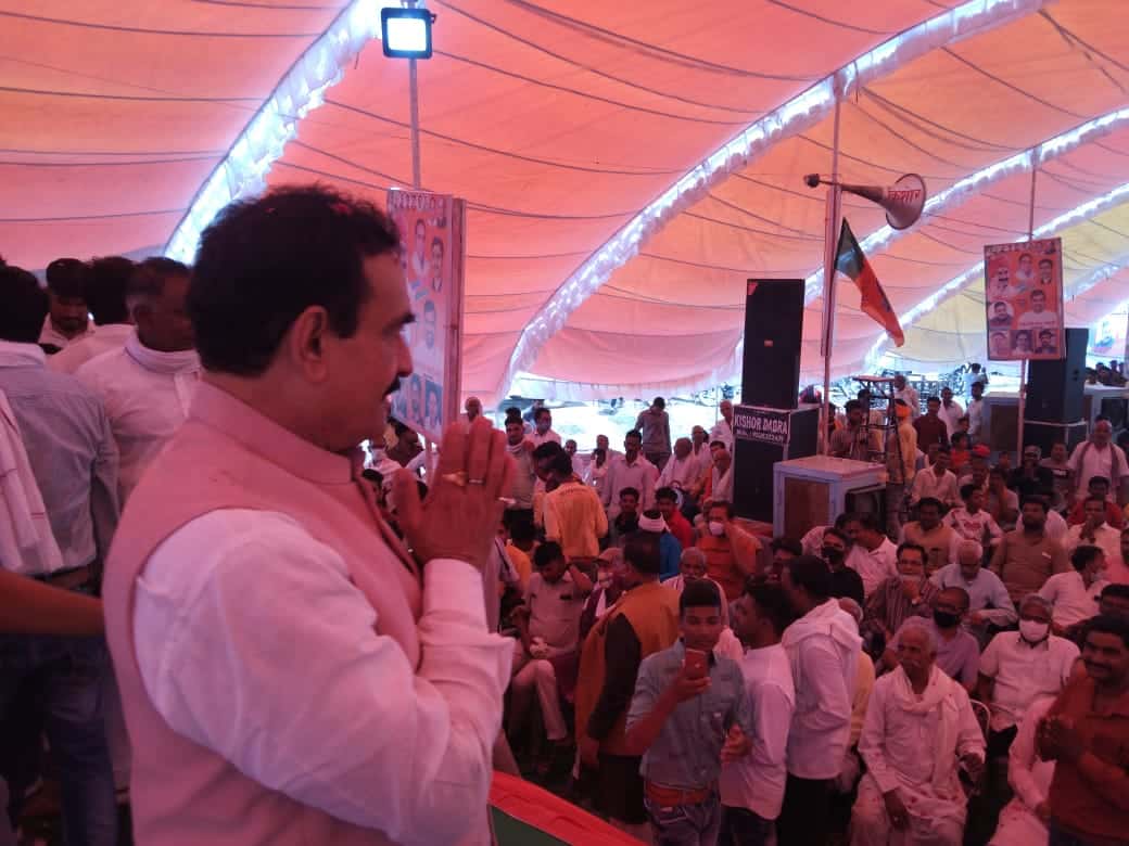 डबरा, सलिल श्रीवास्तव। भारत की जनता को गोचर समझते हैं कांग्रेसी और सिर्फ बोटो की फसल को चरने आते है फिर 5 साल के लिए गायब हो जाते है, यह कहना है मध्यप्रदेश के गृह मंत्री डॉक्टर नरोत्तम मिश्रा (Home Minister Dr Narottam Mishra) का। दरअसल गृह मंत्री रविवार को डबरा (Dabra ) विधानसभा के ग्राम टेकनपुर लाखिया में शासकीय अधिवक्ता परमाल सिंह बघेल द्वारा आयोजित किए गए बघेल समाज के स्वागत समारोह में शिकरत होने पहुंचे थे। और इस दौरान नरोत्तम मिश्रा का शायराना अन्दाज़ भी देखने को मिला।