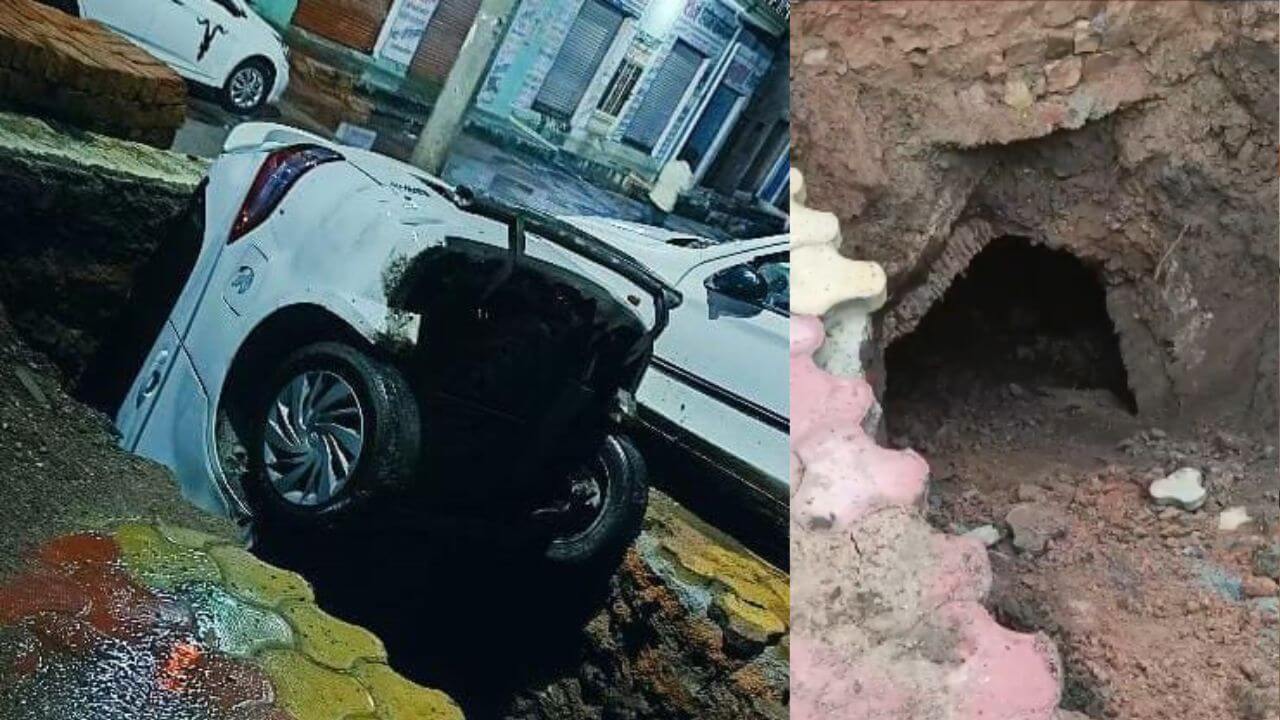 Gwalior News : मध्य प्रदेश के ग्वालियर जिले की पिछोर नगर परिषद में बीती रात 4 घंटे हुई बारिश के चलते सड़क धंस गई। जिसमें एक कार समा गई, यह तो किस्मत अच्छी थी कोई जनहानि नहीं हुई। यह दृश्य देखने के लिए लोगों का हुजूम लग गया। बाद में क्रेन की सहायता से कार को बाहर निकाला गया, पर सबसे बड़ी बात यह रही कि जिस जगह कार गिरी है। वहां पुरानी बावड़ी दिखाई देने लगी है। जिसकी दीवार भी अब साफ दिखाई दे रही है। सुबह से ही लोगों की भीड़ बावड़ी को देखने या यूं कहें सुरंग को देखने पहुंच रही है।