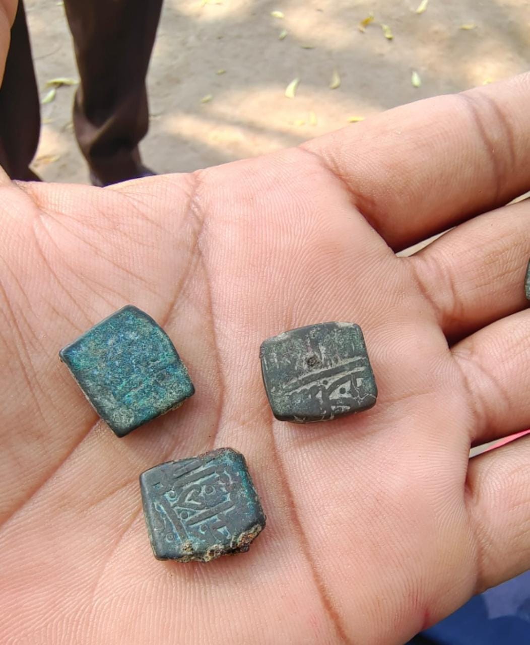 सड़क निर्माण के दौरान घड़े में निकले सिक्के