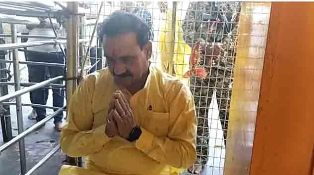 दतिया,सत्येन्द्र रावत। आज (25 अक्टूबर को) साल का आखिरी सूर्य ग्रहण पड़ रहा है। आज का ग्रहण भारत में करीब 2 घंटे तक दिखाई दिया। इस मौके पर मध्य प्रदेश के गृहमंत्री डॉ नरोत्तम मिश्रा (home minister dr narottam mishra) सूर्य ग्रहण के बीच जप तप करने के लिए पीतांबरा मंदिर पहुंचे। उन्होंने पूरे विधि विधान से मां पीतांबरा देवी के सामने आसन पर बैठकर जप तप किया है। उन्होंने पहले मां पीतांबरा देवी के दर्शन किए उसके बाद वह आसन पर माला लेकर जप किया।