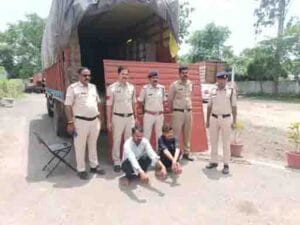 पुलिस द्वारा मिली जानकारी के अनुसार, आने वाले विधानसभा चुनाव को देखते हुए अंतर्राज्यीय बार्डर पर वाहन चेकिंग करने के निर्देश दिए गए थे। उसी को लेकर वाहन चेकिंग कर रहे थे। इस दौरान औद्योगिक थाना क्षेत्र पुलिस ने वाहन को चैकिंग के समय मधुमिलन चौराहे पर एक ट्रक को पकड़ा। जब पुलिस ने वाहन को पीछे चेक किया तो उसमें शातिराना रुप से वाहन में पार्टीशन कर अंग्रेजी शराब की अवैध रूप से 250 पेटी रखी हुई थी। पुलिस ने जब चालक से पूछताछ की तो वह कोई संतुष्ठ जवाब नहीं दे पाया और अपना नाम कनू बताया। पुलिस ने चालक के साथ एक अन्य आरोपी सुनील पिता रीछू उम्र 20 निवासी ग्राम मगरदा थाना बाग जिला धार को भी गिरफ्तार किया है। दोनों आरोपियों के विरुद्ध धारा 34(2) आबकारी एक्ट के तहत अप0 क्र0 600/23 पंजीबद्ध किया गया है।