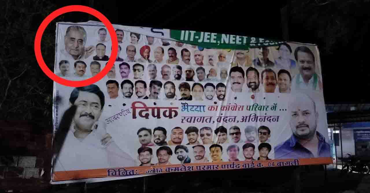 कांग्रेस के पोस्टर में भाजपा के संस्थापक का चित्र, चर्चा का केंद्र