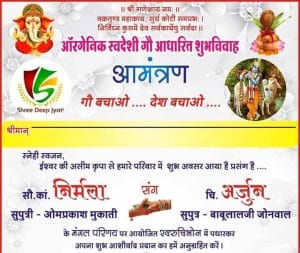 पांडाल को कीटाणु रहित बनाने के लिए देशी गाय के गोबर से लीपा गया।वही पत्तल भी खाकरे के पत्ते कि व चाय कप भी देशी मिट्टी के कुल्हड़ में पिलाई गई। दीप ज्योति के सीईओ दीपक राव व डायरेक्टर दीपक सुल्तानिया ने बताया कि पूरे आयोजन में सब्जी से लेकर मशाले तक जैविक पद्धति से तैयार थे।यहां तक कि दाल भी देशी घट्टी में तैयार हुई थी।