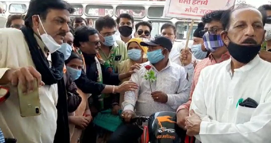 देवास, अमिताभ शुक्ला। पेट्रोल डीजल की बढ़ी हुई कीमतों को लेकर कांग्रेस ने देवास में मंत्री सज्जन सिंह वर्मा के नेतृत्व में विरोध प्रदर्शन (protest) किया साथ ही जमकर नारेबाजी भी की। यहां कांग्रेसी (congressmen) ए बी रोड पर स्थित पेट्रोल पम्प (petrol pump) के बाहर इकट्ठा हुए और विरोध प्रदर्शन किया। इतना ही नहीं, पेट्रोल पम्प पर पेट्रोल भरवाने आये लोगों को पूर्व मंत्री सज्जन सिंह वर्मा सहित कांग्रेसियो ने गुलाब (roses) के फूल भी दिए।