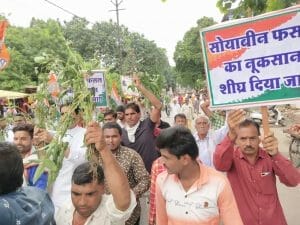 देवास, अमिताभ शुक्ला। मालवा सहित अन्य जगहों पर जिस तरह से सोयाबीन की फसल (soybean crop) खराब हुई है। उसके बाद विपक्ष किसानों के साथ मिलकर सड़कों पर उतरता हुआ दिखाई दे रहा है। और इसी कड़ी में शुक्रवार को देवास (dewas) में पूर्व मंत्री सज्जन सिंह वर्मा (Sajjan Singh Verma) ने किसान और कांग्रेसियों के साथ मिलकर रैली निकाली और हाथो में खराब फसलो को लेकर कलेक्टर कार्यालय पहुँचे। और वहां जमकर हंगामा किया। इस दौरान सुरक्षा की दृष्टि से पुलिस बल भी मौके पर मौजूद रहा।