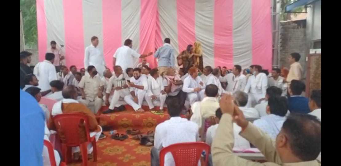 भिण्ड, गणेश भारद्वाज। जिले के गोहद विधानसभा क्षेत्र में विधानसभा उपचुनाव में कांग्रेस की जीत के सात महीने बाद जन समस्याओं को लेकर कांग्रेस कार्यकर्ताओं की बैठक आयोजित की गई। यहां कांग्रेस की जिला स्तर से लेकर विधानसभा स्तर के कार्यकर्ताओं की मीटिंग में पाँच घंटे तक लगातार हंगामा चलता रहा। हंगामे के दौरान कुछ कार्यकर्ता विधायक पर अनसुनी करने का आरोप लगाते रहे तो दूसरे कार्यकर्ता विधायक के पक्ष में उन्हीं कार्यकर्ताओं से विवाद करने पर भी आमादा हो गए।